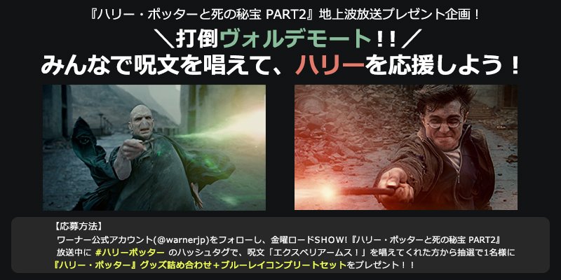 O Xrhsths ワーナー ブラザース ジャパン Sto Twitter エクスペリアームス D 打倒ヴォルデモート 当アカをフォローし放送中に ハリーポッター タグで呪文 エクスペリアームス をツイートすると抽選で豪華プレゼント